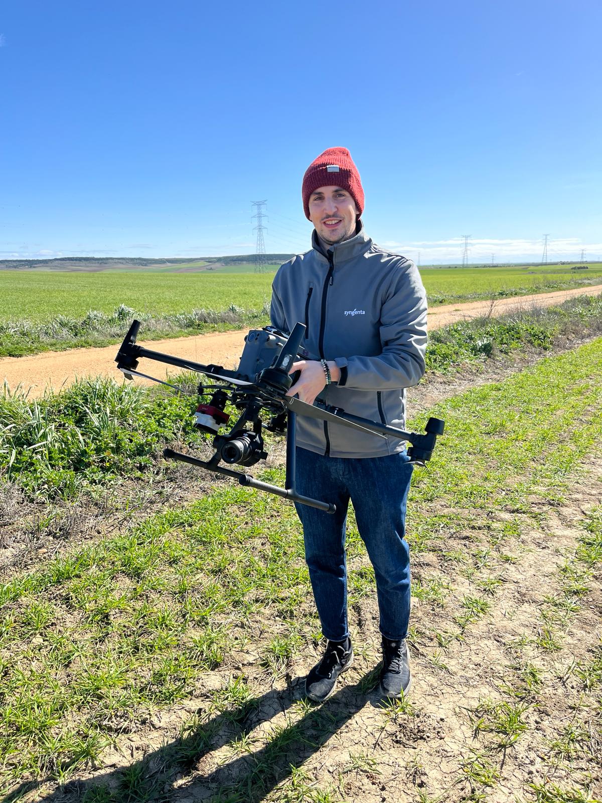 Gabriele Gherardi, a member of Syngenta's Digital Europe Team and expert in New Technologies, providing training for drone pilots with a precision agriculture research drone.