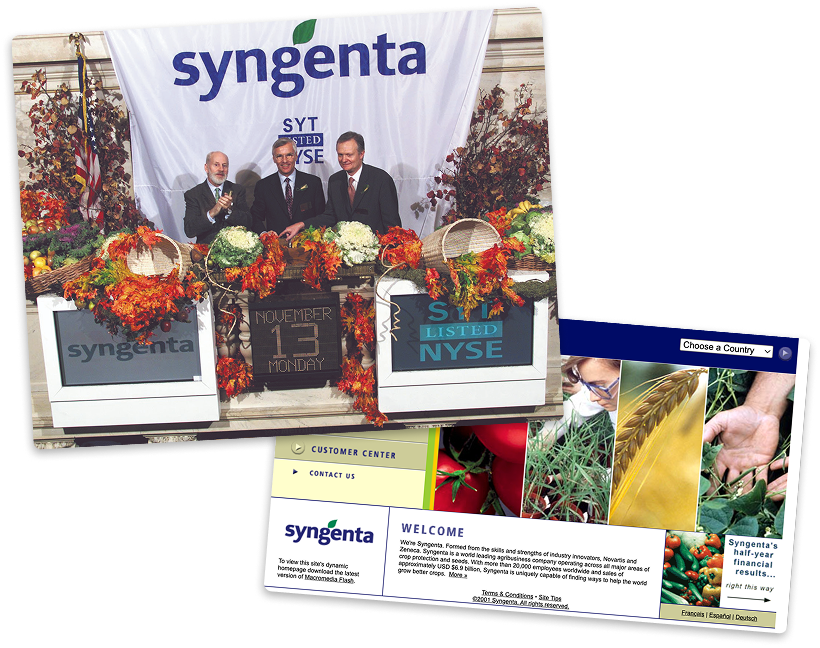 Syngenta listing on the New York Stock Exchange and launching the syngenta.com website.