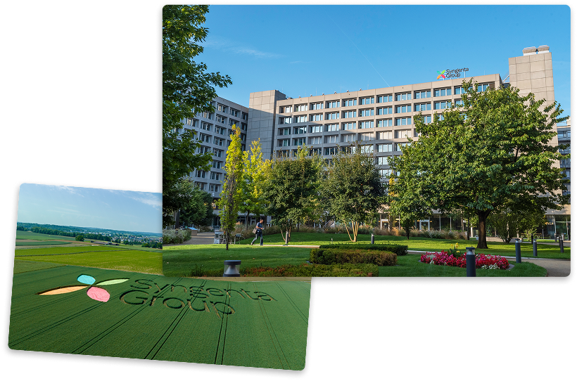 Syngenta Group headquarters in Basel, Switzerland and our Syngenta Group logo in the field by Zurich airport.