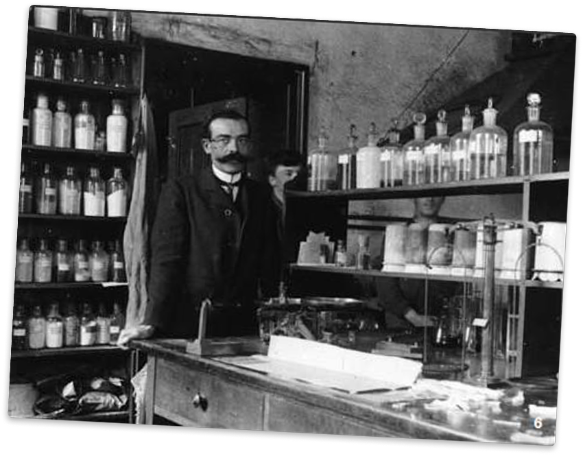 1909: Chemist Traugott Sandmeyer in his laboratory at J.R. Geigy's in Basel, where he made important discoveries in the field of dye synthesis. Source: Association for Industrial and Migration History of the Basel Region.